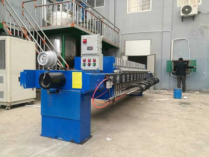 隔膜壓榨壓濾機(jī)是由隔膜板和廂式濾板排列組成濾室,在輸料泵的壓力作用下將料漿輸入濾室,通過過濾介質(zhì)(濾布)將料漿中的固體和液體分離,當(dāng)料漿中的固體形成餅后,再向隔膜通入空氣,對濾室內(nèi)的固體充分壓榨。