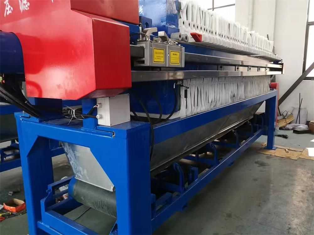 全自動廂式壓濾機(jī)與普通廂式壓濾機(jī)的不同之處在于多了自動拉板系統(tǒng),自動接液翻板,自動清洗濾布等系統(tǒng)。使設(shè)備操作更加智能化自動化。整機(jī)結(jié)構(gòu)設(shè)計科學(xué)合理,機(jī)械強(qiáng)度高、結(jié)構(gòu)穩(wěn)固、經(jīng)久耐用并且便于操作和維護(hù)。
